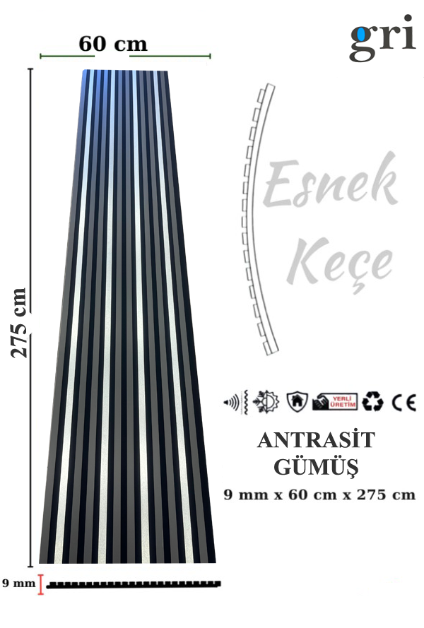 AHŞAP ANTRASİT GÜMÜŞ AKUSTİK LAMBİRİ PANEL